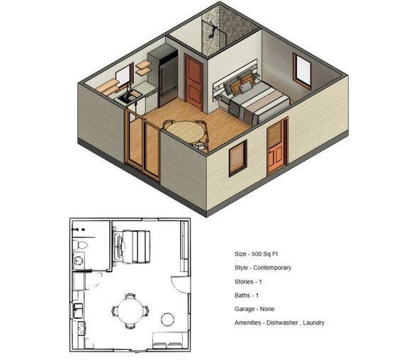 500 Square Foot Studio House Plans Pdf Cad Files For Etsy Australia